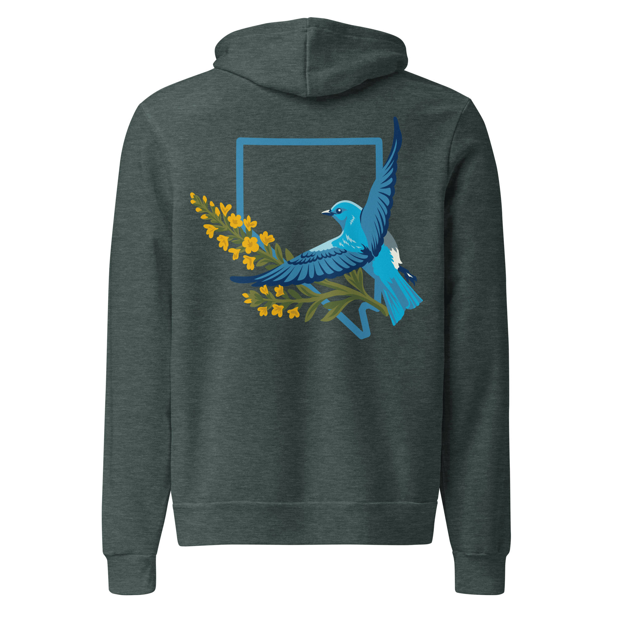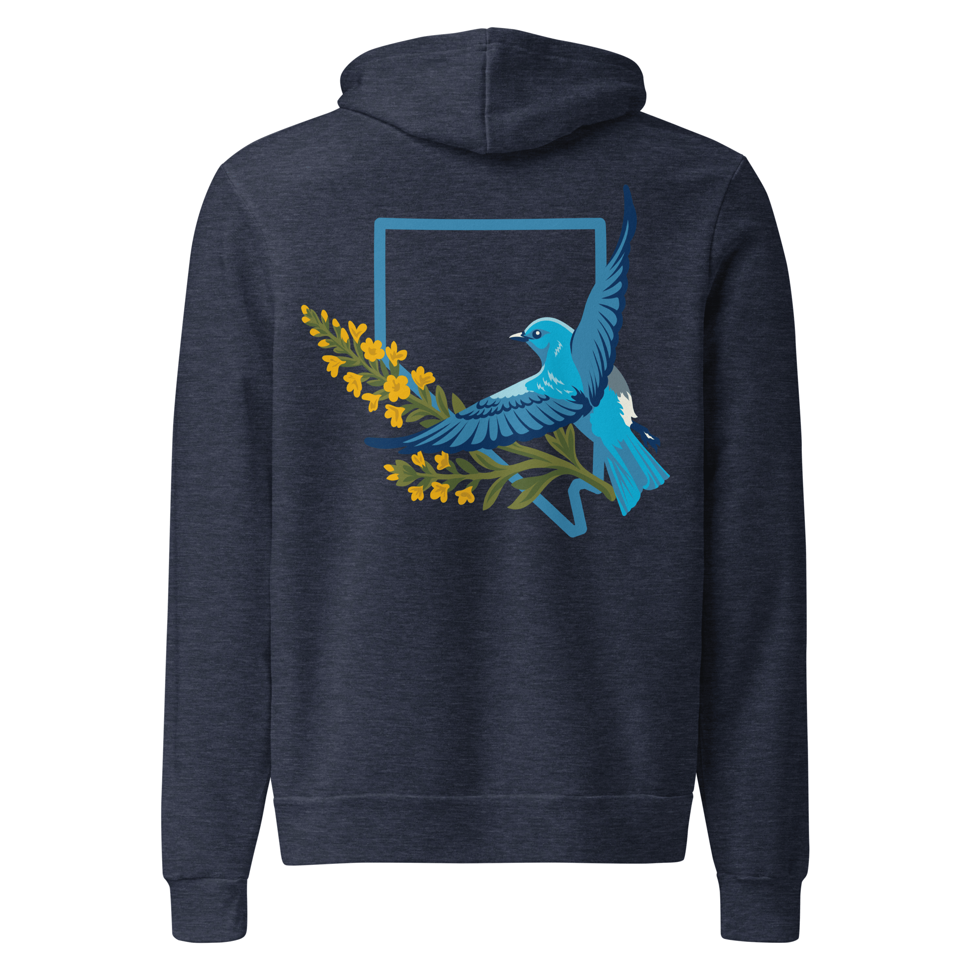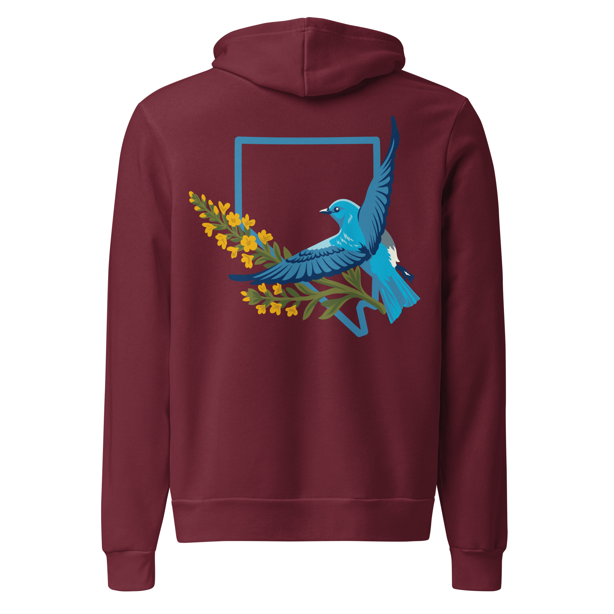 I wanted to take the Mountain Bluebird design and put it on something a bit more substantial for when the temperature drops. This hoodie features the state bird paired with the Nevada outline, keeping the look clean and focused on the natural beauty of the high desert.