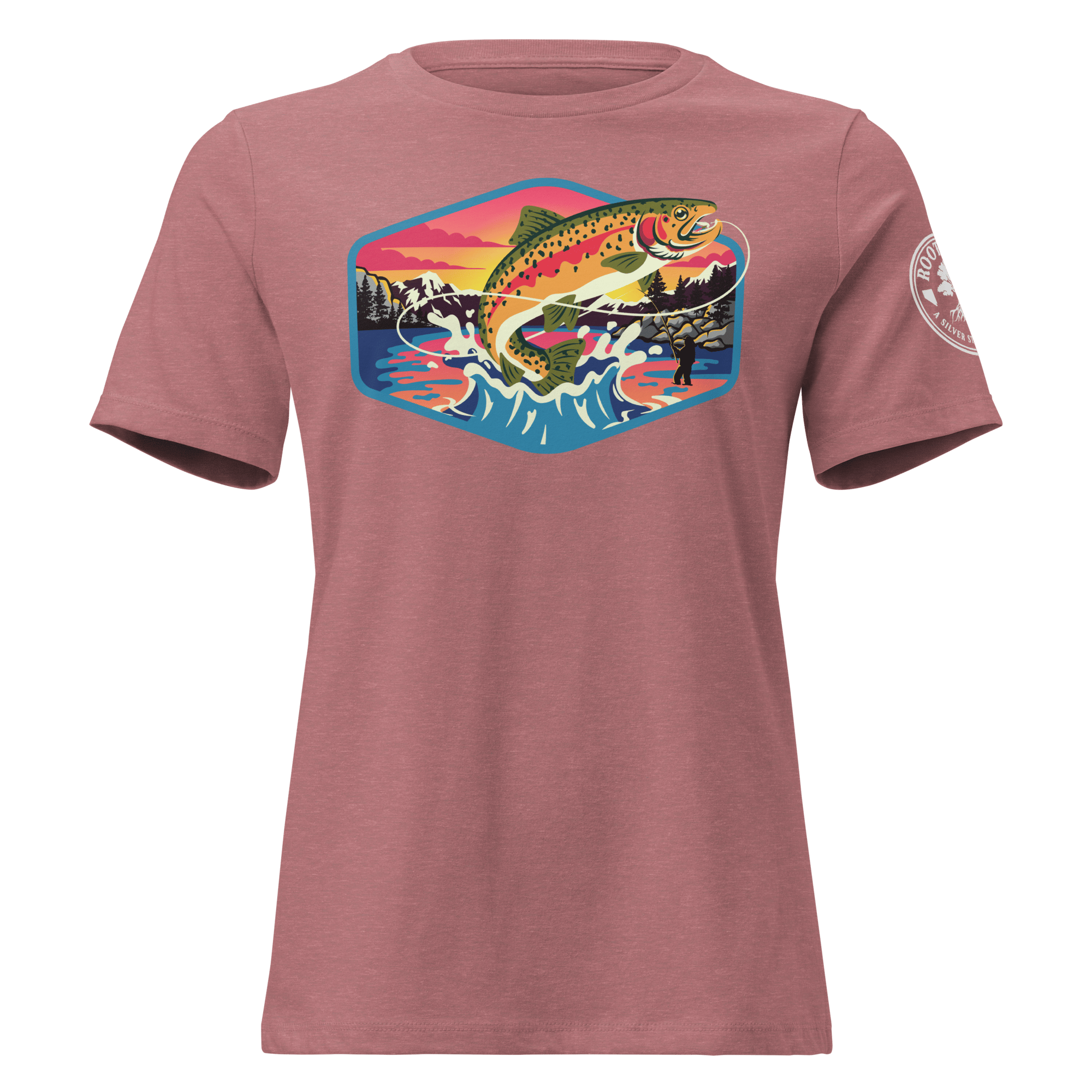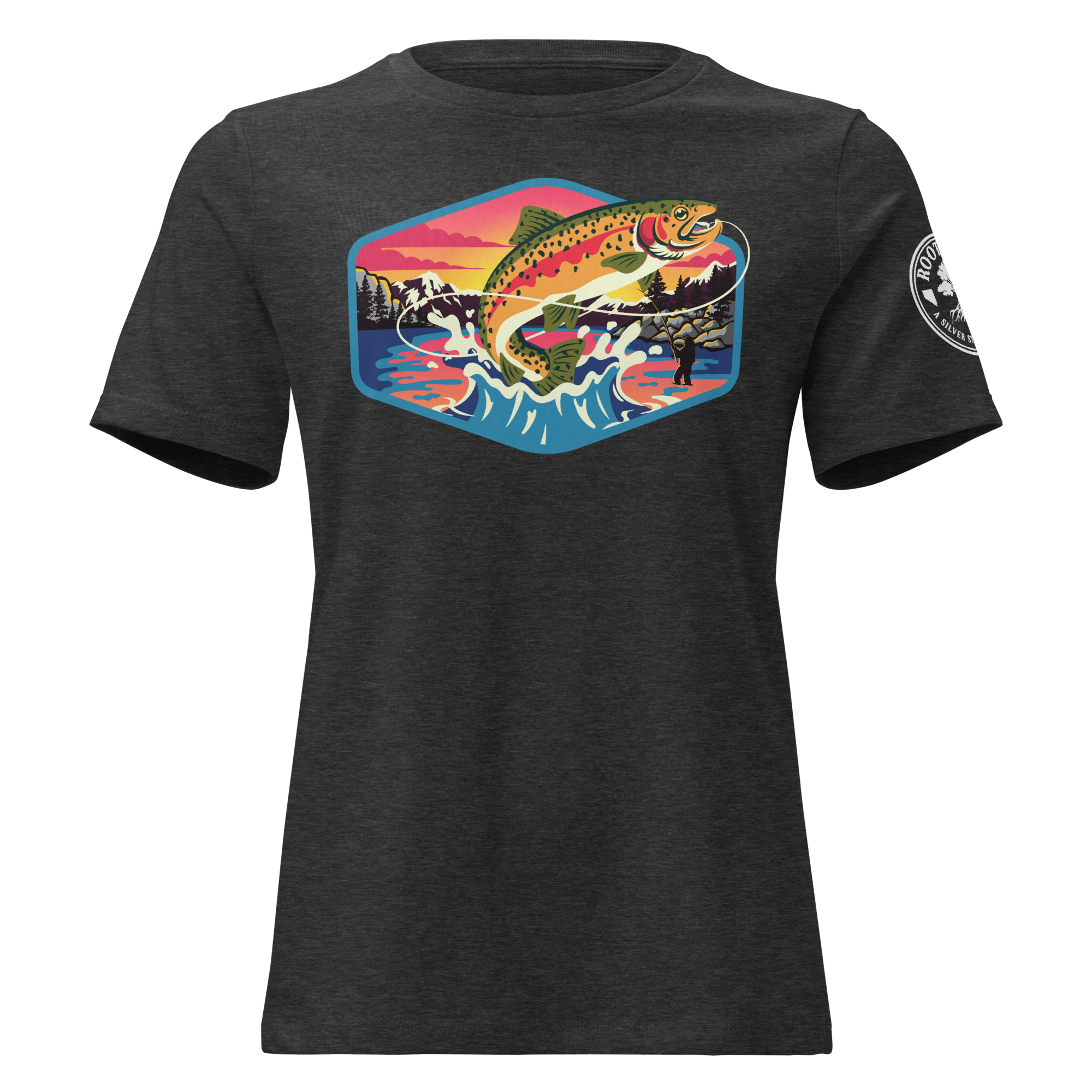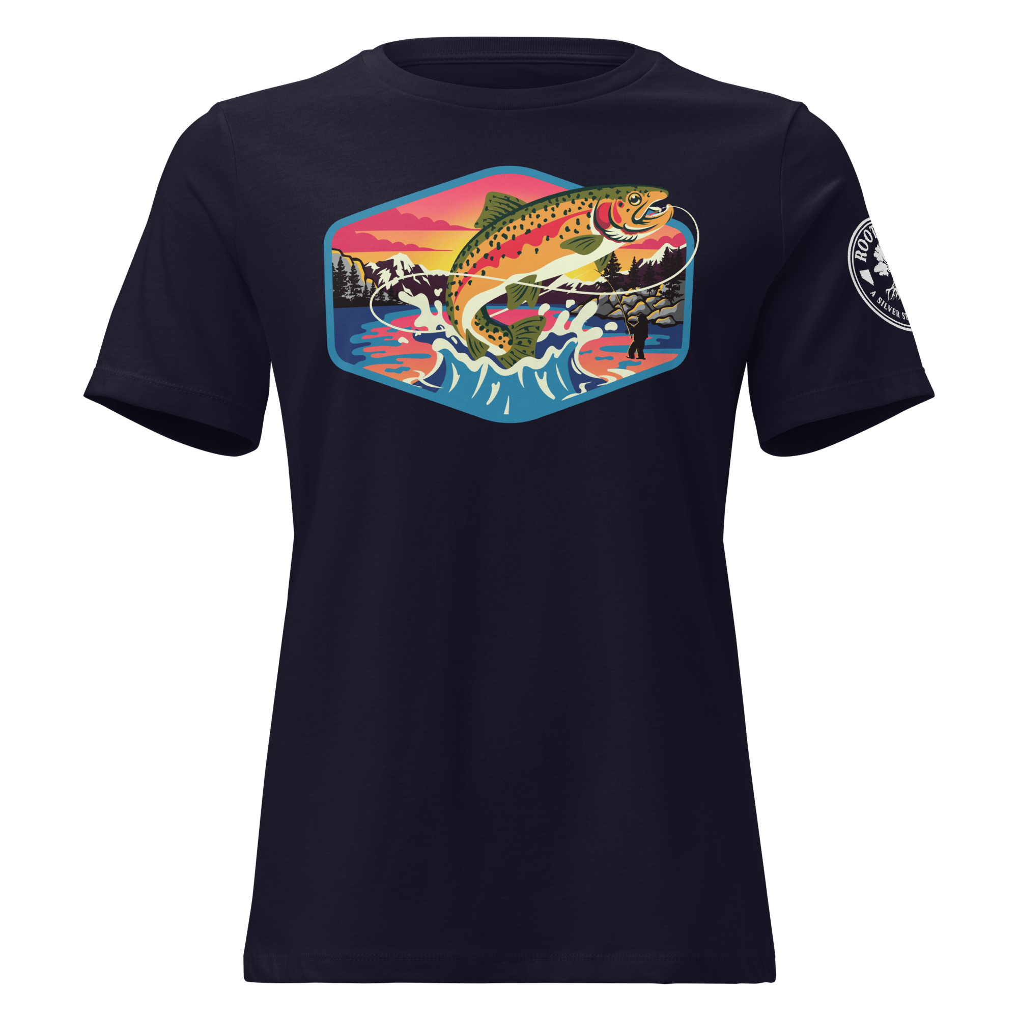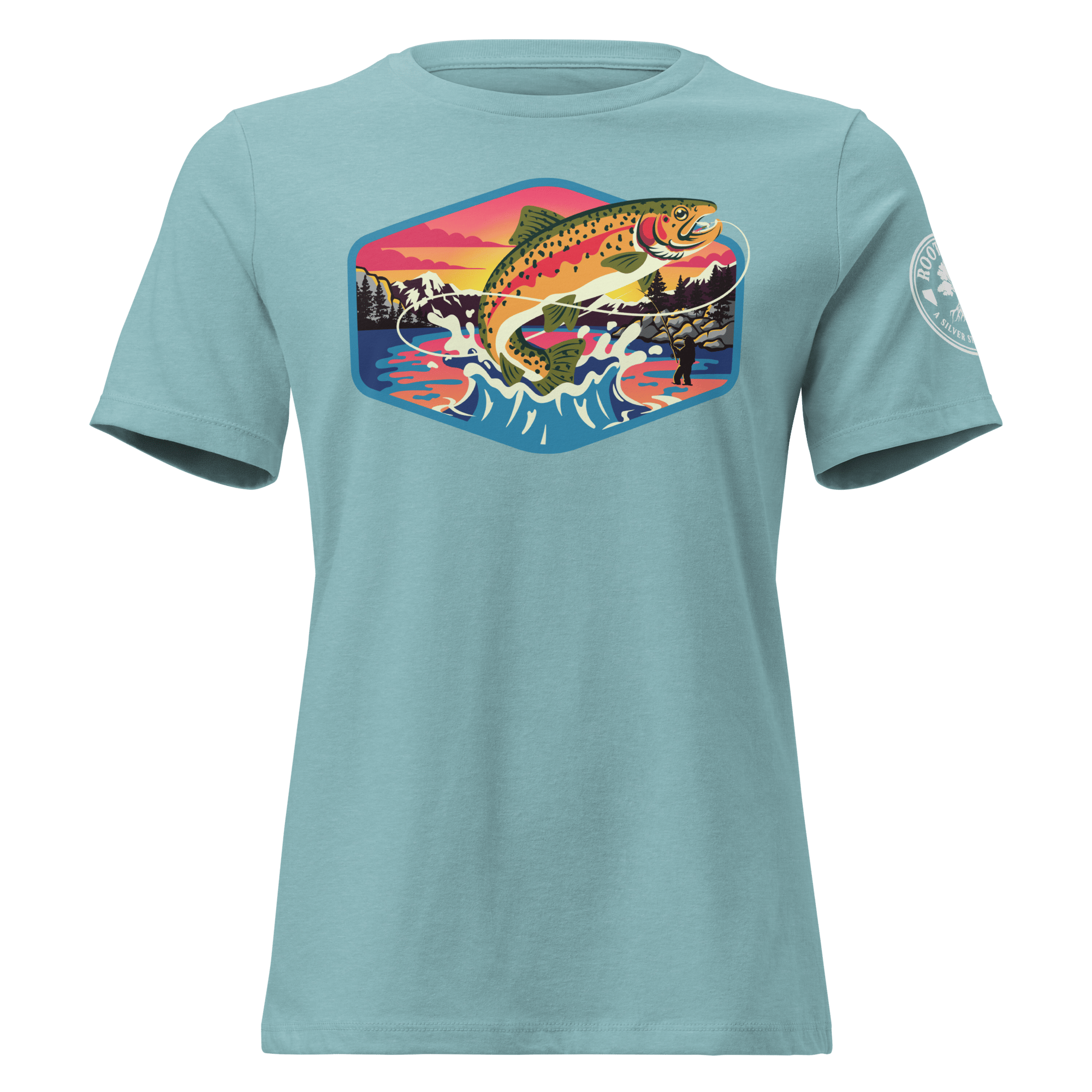 It’s printed on a soft, tailored women’s cut that’s built for movement. Whether you’re casting a line or just enjoying a weekend outside, it’s designed to be that reliable, breathable shirt you reach for every time. I keep the design clean and the fabric high-quality so it stands up to whatever the day throws at you.